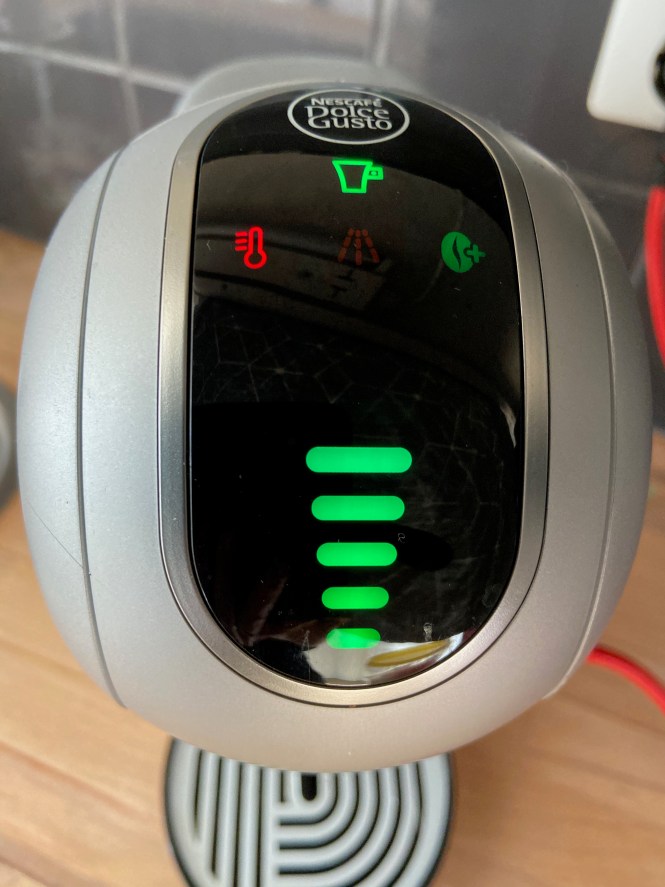 De Dolce Gusto Touch heeft geen duidelijke aan en uit knop. Hij gaat aan bij aanraking. Als je het apparaat voor het eerst uit de verpakking haalt, is dit niet meteen duidelijk. Ook wordt er aangegeven de hendel op warm / koud zetten. Op de Dolce Gusto Genio 2 Touch zit deze hendel niet. Een beetje verwarrend.